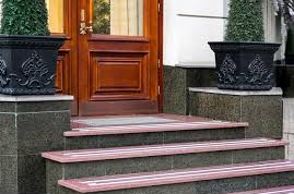 Marble steps offer a luxurious, elegant look with unique veining. Though more delicate, they provide timeless beauty and sophistication, perfect for high-end properties.